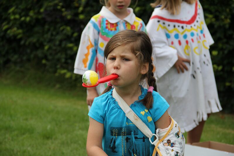 De indianensproeier in en naar dromenland voor de kleinsten, dan pas begon voor de grotere een echte indianenquiz.
