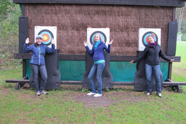 Jammer genoeg regent het hier de hele dag.. Maar dat houdt ons niet tegen om ons goed te amuseren. Gisteren hebben we een oriƫntatieloop gedaan, boogschieten, trampoline springen, hockey of badminton.