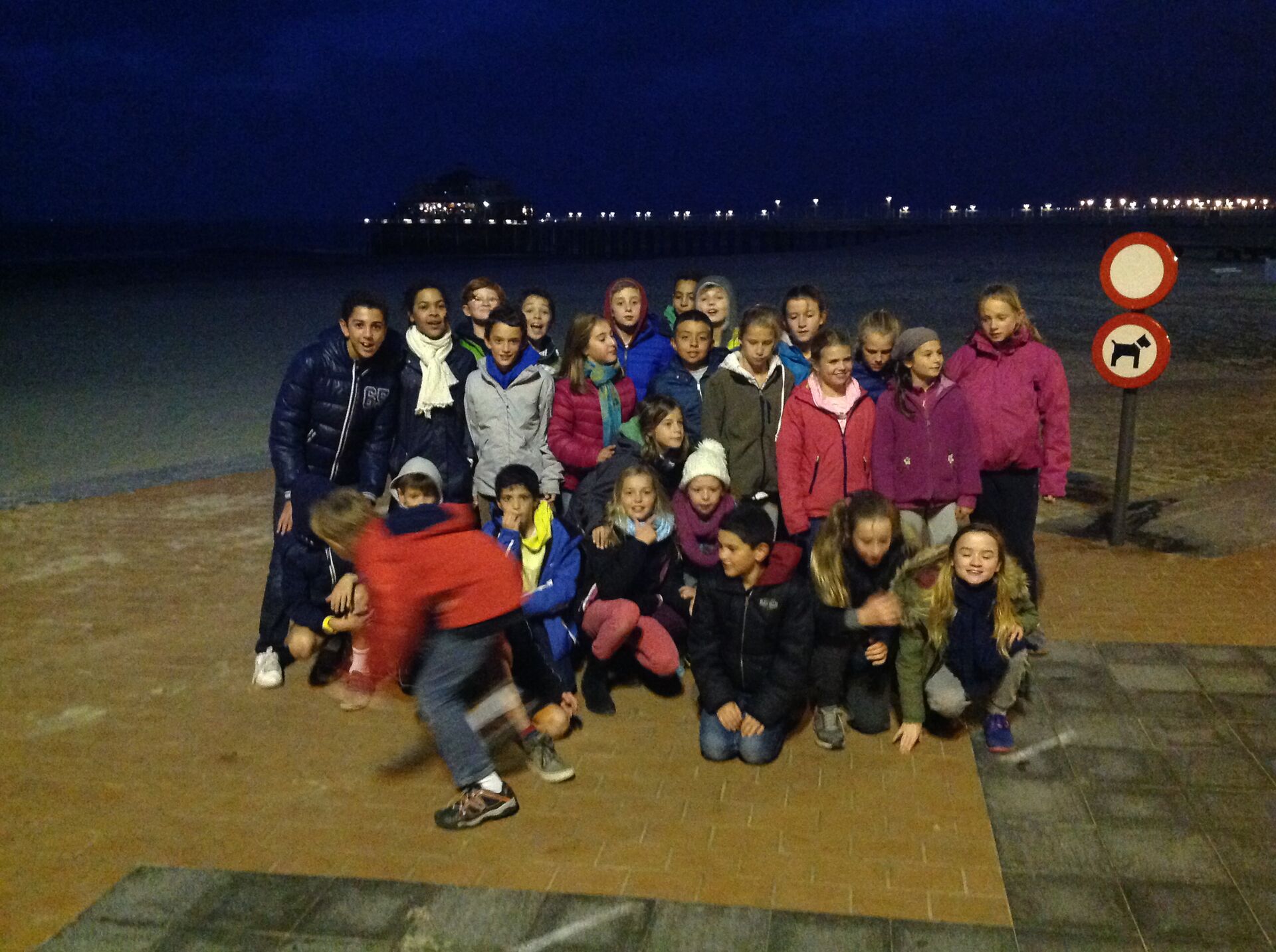 Vroeg uit de veren! Ontbijten! sporten! Handbal en hockey stonden op het menu. Velen konden hun talent tonen aan de meester en de juffen. Het hockey spelen viel in de smaak. Ook handbal, wat voor sommigen een nieuwe ervaring was werd een succes. Op het menu stond vandaag kalfsblanquette, worteltjes en puree. Een ijsje als dessert. Met een goed gevulde maag vertrokken we richting Zeebrugge met de tram. Daar maakten we kennis met de geheimen van de zee. De mooie tentoonstelling viel bij de kinderen in de smaak waardoor het invullen van het werkboekje vlot verliep tot groot jolijt van de meester en de juffen. Nadien dachten sommigen dat we met de duikboot terug naar Blankenberge zouden varen, jammer; juf Katleen had de tramtickets netjes bijgehouden dus ...... terugkeren met de tram! We werden getrakteerd op snoepjes en drankjes en sloten de avond dansend af. Slaapwel iedereen, morgen zijn we terug.xxx