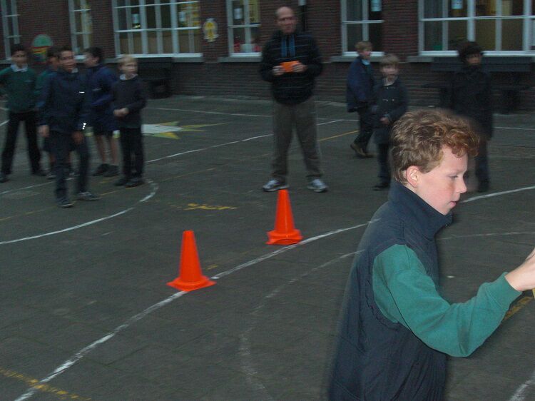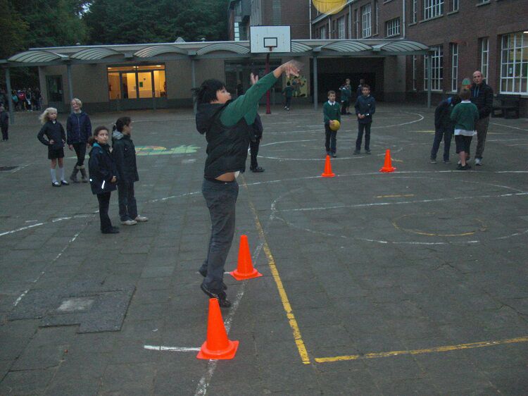 Sinds vorige week zijn de leerlingen van het 6de leerjaar ook gestart met de shoot - out wedstrijd. Elke ochtend tussen 8u10 en 8u25 kunnen jullie in ploegjes van 3 jullie kans gaan. Probeer in 3 minuten tijd zoveel mogelijk punten te behalen.