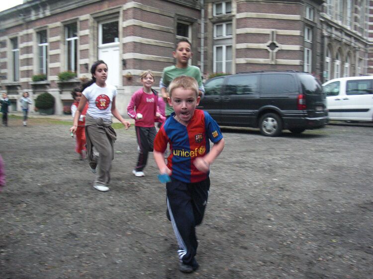 De zesdes deden het deze jogging al een heel stuk beter, gelukkig maar. 6C slaagde er als enige in met alle kinderen het gewenste minimum te halen (of meer) en werd daarvoor al beloond in de turnles. In 6A en 6B blijven er enkele volhouders die hun best niet doen Zij straffen de anderen van de klas maar vooral zichzelf, een gewaarschuwd man is er 2 waard! Wordt vervolgd Dylan, Christian (6A), Torian en Jordy L. (6B) waren de toplopers van het zesde: 10 ronden: knap!