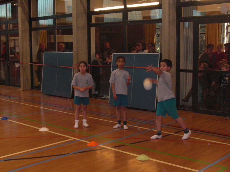 De shoot-out is helemaal afgelopen en de winnaars zijn bekend. Alle deelnemers winnen 1 sportpunt voor zichzelf en de klas, maar 6 kinderen winnen nog net iets meer... Eén jongensploeg en één meisjesploeg mogen onze school verdedigen op de Antwerp Giants Shoot-out in de Arenahal te Deurne, waar ze zich proberen plaatsen voor de grote finale in de Lotto-arena voor duizenden toeschouwers.Met een schoolrecord van 62 punten plaatste de jongensploeg zich met Dylan (6A), Jordy L. en Thiago (6B). De winnende meisjesploeg scoorde 24 punten en bestaat uit Ruveyda (6A), Demi en Pelin (6B).De shoot-out zal doorgaan in de Arenahal te Deurne op woensdag 30/11/2011, hou dis datum dus vrij. Supporters ook welkom, verdere info volgt...