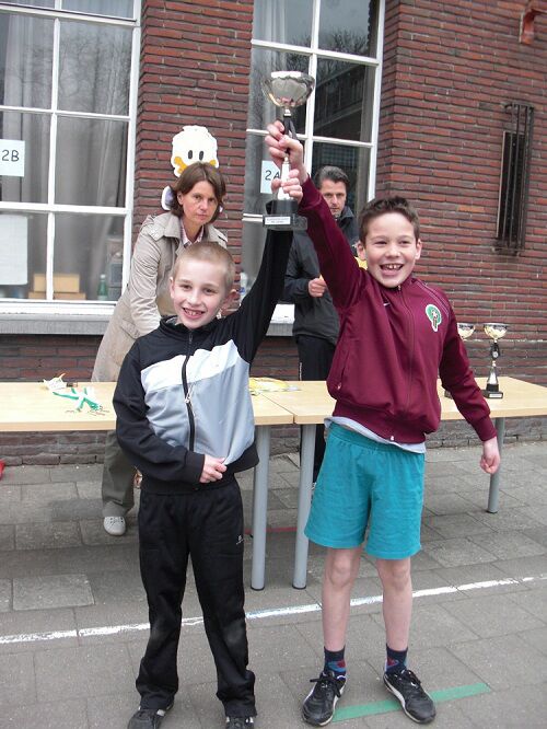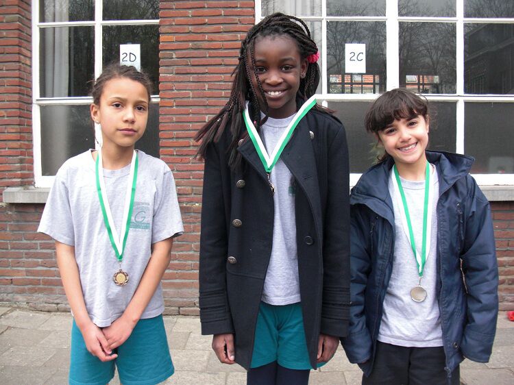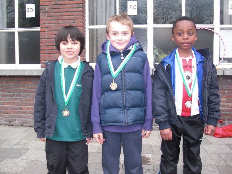 Zo wonnen de jongens van het 6de leerjaar de aflossingswedstrijd, knap gedaan Thiago, Ayman, Steff en Dylan. Dylan won ook goud bij het hoogspringen en de 60m. Steff behaalde zilver op de 60m.