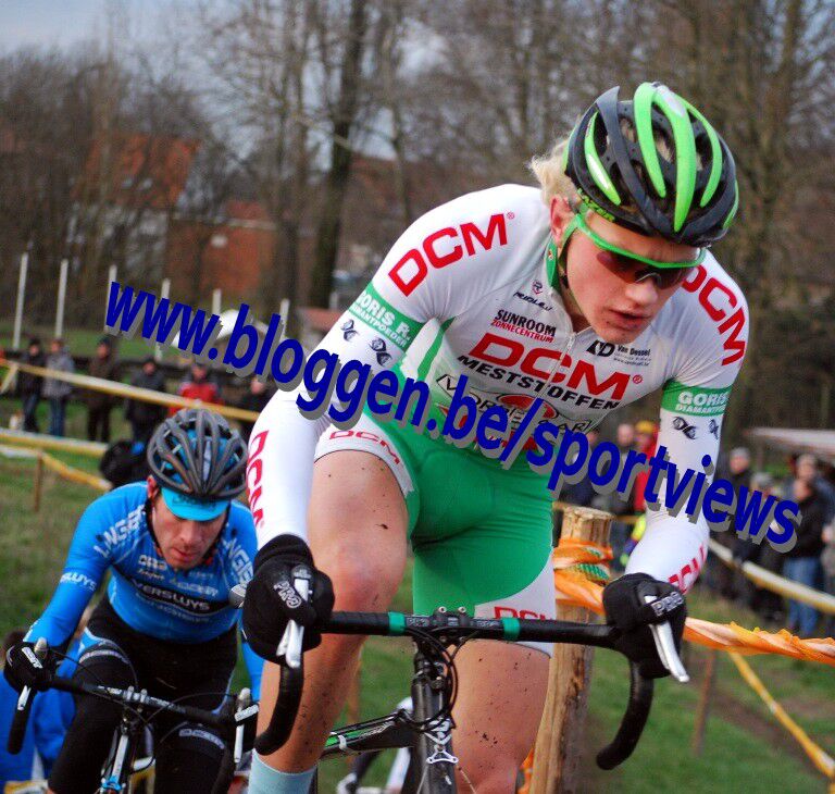 Kevin Cant behaalt, net als Floris bij de juniores, solo de streep! Bij de Formule B (Ezc/U23) kwamen maar liefst 61 renners aan de start,;onverhoopt succes voor de organisatie!Aanvankelijk werd het commando gevoerd door een snel startende Kevin Eeckhout van het Sunweb Revor Cycling Team. Na een aantal ronden moest hij echter het leiderschap afstaan aan Kevin Cant(AVB Cycling Team). Belofterenner Kevin Cant hield er een stevig ritme op na en wist een mooie voorsprong bijeen te fietsen. Net zoals Kevin Eeckhout werden de geleverde inspanningen in de eindfase doorgerekend en kwamen de eerste achtervolgers steeds dichterbij. Maar de belofterenner hield mooi stand en liet ex-prof Tom Vannoppen (2de) achter zich,gevolgd door ploegmakker Dave De Cleyn (3de).