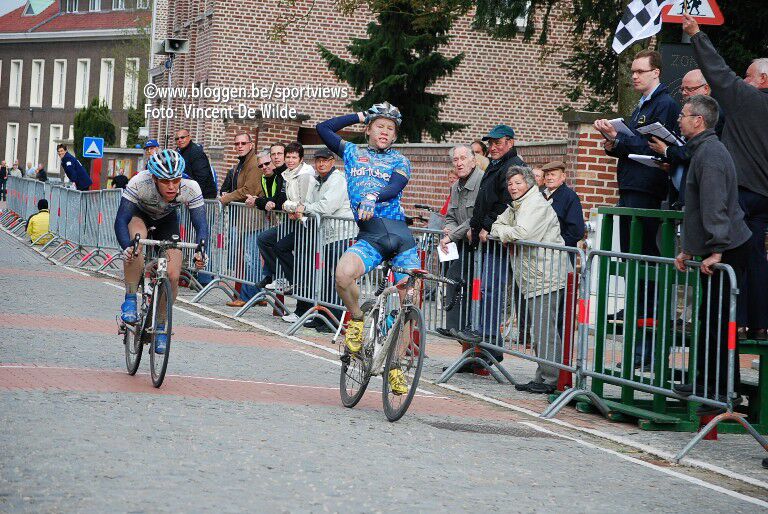 Met nog anderhalve ronde voor de boeg besluiten Floris De Tier en Jef Van Meirhaeghe een tandje bij te steken en de kopgroep te laten voor wat het is. Twaalf kilometer en achthonderd meter verder zullen ze het onder elkaar zullen uitvechten in een spurt. Jef Van Meirhaege haalt het in deze spurt met 2 fietslengten voorsprong. De nederlander Dennis Van Iersel wint de spurt voor de 3e plaats.