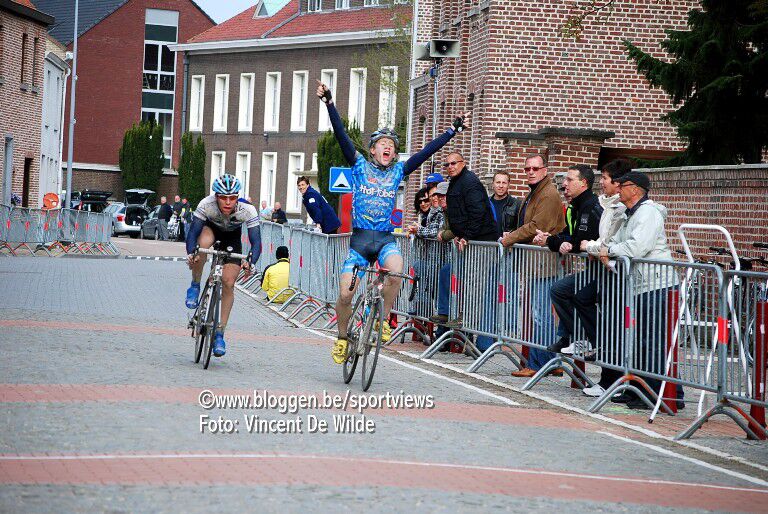 Na zijn eerste overwinning vorige week te Gullegem (winnaar op 1mei tesamen met Tim Merlier) wist Evert er vandaag al een zegestreepke bij te plaatsen. Nadat meermaals enkele renners probeerden weg te glippen uit het peleton onstond er op drie ronden van het einde een kleine kopgroep van 4 renners waaronder thuisrijder Gauthier Van De Voorde (Isorex CT),Moreno Geerts (WC Vos Sportief), Robin Broeckaert (Keukens Redant) en Evert Vandromme (CT Dj Matic). Ze konden hun voorsprong tot aan de meet vasthouden. In de spurt won Evert makkelijk van zijn medevluchters.