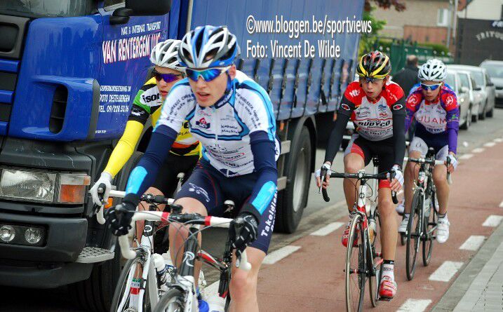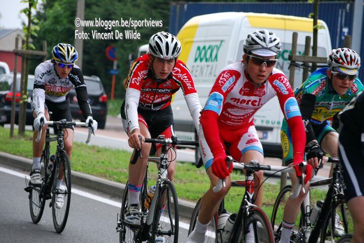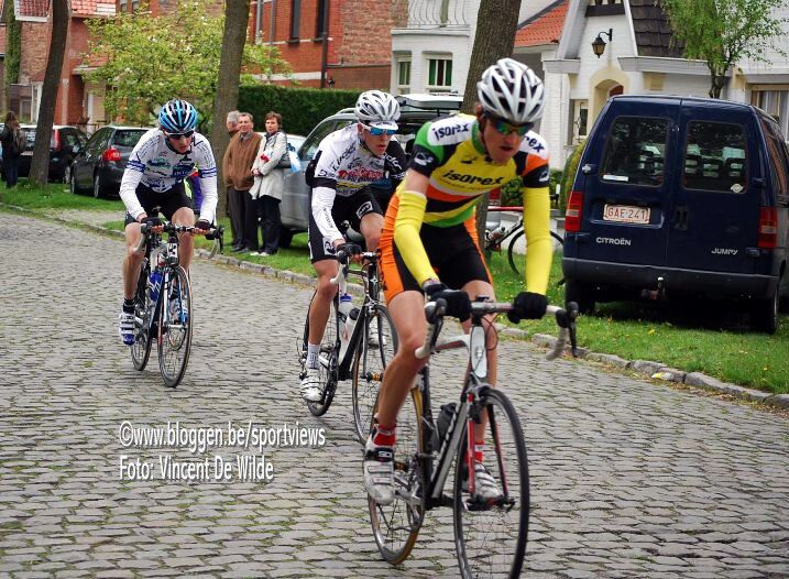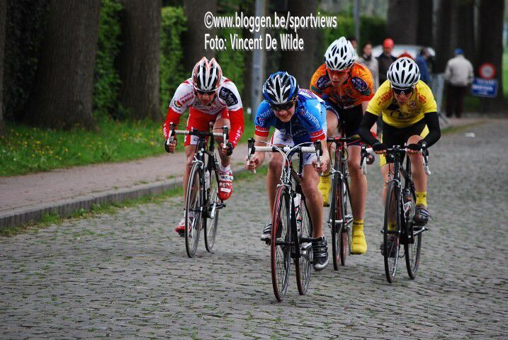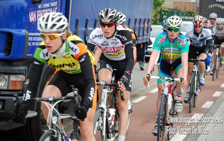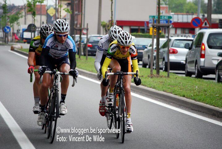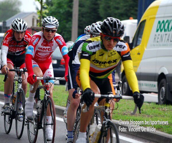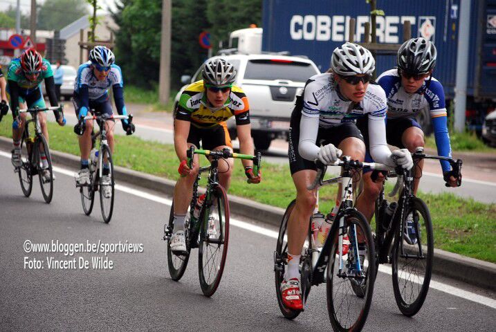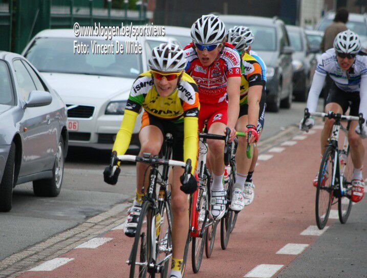 Nevele. Floris De Tier behaalde in Nevele zijn eerste zege op de weg van het seizoen 2010. De Isorexrenner uit Semmerzake behaalde de meet solo, nadat hij in de laatste ronde wist te ontsnappen uit een selecte kopgroep (6 renners). Robin Van Goethem bolde een halve minuut later over de streep. Als derde volgde even later Bart Baele, gevolgd door een wederoptredende Jonas De Permentier (4de). Ploeggenoot (Isorexrenner) Giovanni De Merlier sluit de top 5 af.