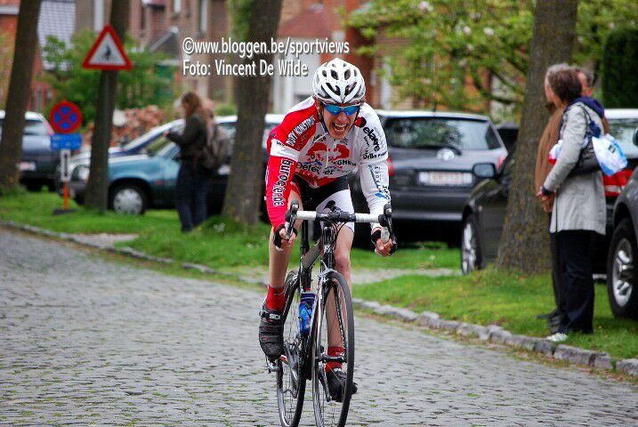 Na zijn eerste overwinning vorige week te Gullegem (winnaar op 1mei tesamen met Tim Merlier) wist Evert er vandaag al een zegestreepke bij te plaatsen. Nadat meermaals enkele renners probeerden weg te glippen uit het peleton onstond er op drie ronden van het einde een kleine kopgroep van 4 renners waaronder thuisrijder Gauthier Van De Voorde (Isorex CT),Moreno Geerts (WC Vos Sportief), Robin Broeckaert (Keukens Redant) en Evert Vandromme (CT Dj Matic). Ze konden hun voorsprong tot aan de meet vasthouden. In de spurt won Evert makkelijk van zijn medevluchters.