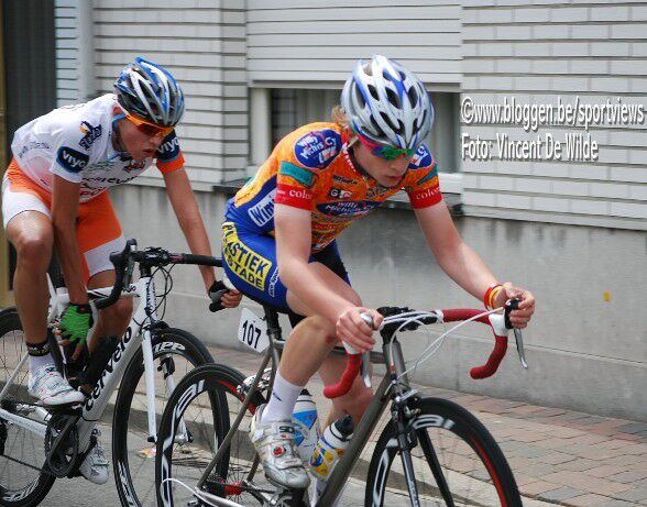 Foto1 Mathias Van Holderbeke geeft er direct een lap op vanaf de eerste ronde...Andres Saelens volgt attent.
