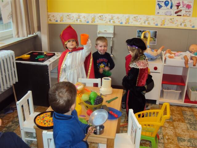 Deze week hadden we het natuurlijk over de goeie Sint en zijn knechten.We maakten een kasteelhoek in de klas, waar Sint en zijn Pieten speelgoed konden maken voor de kindjes en waar ze ook konden slapen.Ook verkleedkleren van de Sint en Piet konden ze aantrekken.