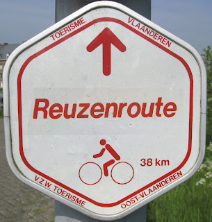 De Reuzenroute in Dendermonde is genoemd naar de drie gildenreuzen Indiaan, Goliath en Mars die in augustus in de folkloristische 'Reuzenommegang' door de stad trekken. We startten in Dendermonde aan de Schelde en reden richting de samenvloeiing met de Dender. Nu fietsten we langs de Dender voorbij de tijsluis richting Oudegem en Mespelare. Daar staat de prachtige Sint-Aldegondiskerk met ervoor de Heerlijkheidspaal en het 'Spaans hof' er schuin tegenover. Daarna ging het terug verder langs de Dender naar Gijzegem. Nu verlieten we de Dender om via 'Babbelaar' en 'Vogelenzang' naar Schoonaarde aan de Schelde te fietsen. De rest van de Reuzenroute verliep langs de Scheldeboorden, voorbij het veer naar Appels terug naar Dendermonde. In Dendermonde reden we nog langs enkele mooie plekjes om daarna op de prachtige Grote Markt te genieten van een lekkere pint.
