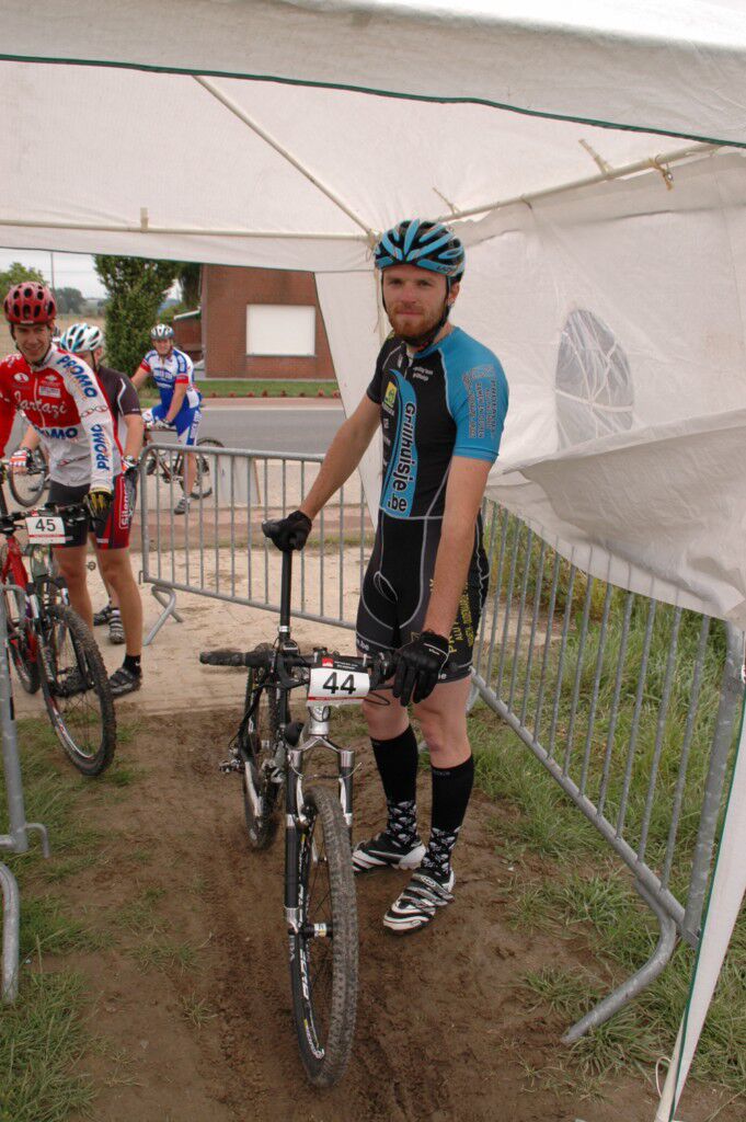 Bij aankomst op de locatie was er al heel wat volk, blijkbaar interesse van heel wat mensen voor een korte chrono-rit. Collega 24Uren-rijder Kurt was er ook, samen met een Versluys-renner, Lode Labeeuw. Al veel van deze laatste gehoord maar nog nooit echt tegen gereden, de goesting was al direct weg, zeker toen uitkwam dat hij in dezelfde categorie als mij ging rijden.