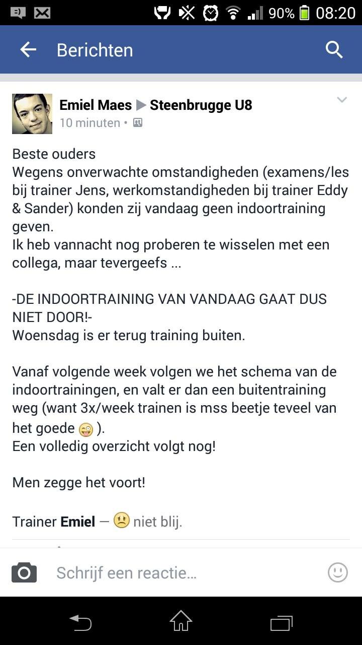 Dinsdag 15/12 Zaaltraining 17u-18u met Emiel,Eddy & Ulrik