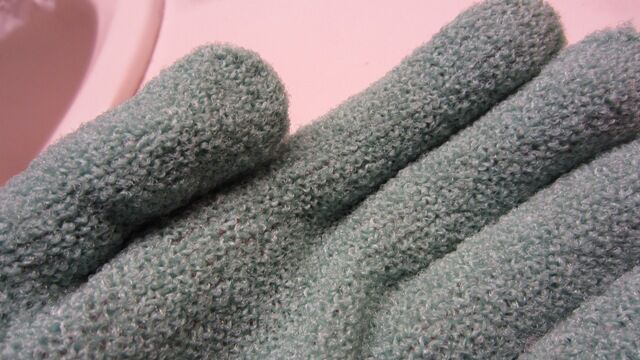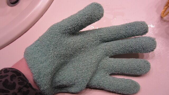 Een andere methode die je kan gebruiken om te scrubben is de scrub-handschoen. Deze heeft geen zeep-besparende voordelen, maar je kan dit wel gebruiken i.p.v. gewone scrub-gel. De handschoen heeft ook een soort ruwer materiaal waardoor het makkelijk dode huidcellen van het lichaam kan schuren.
