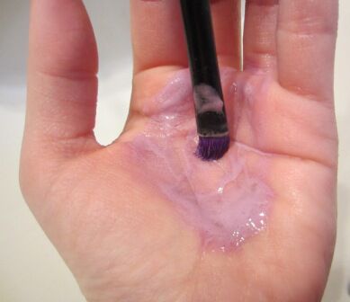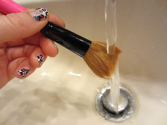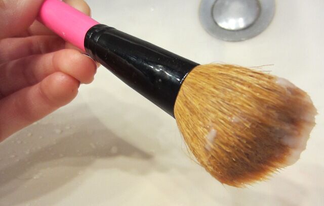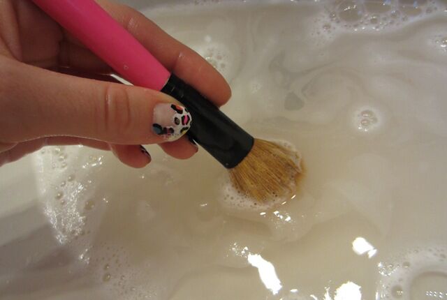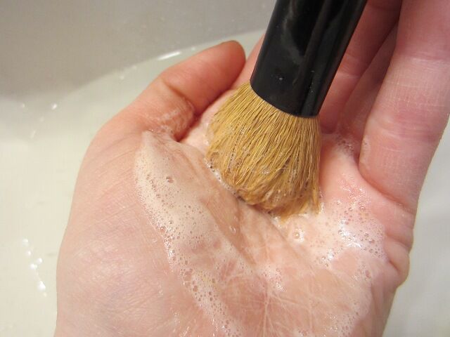 Voeg af en toe een beetje water toe, tot er geen make up meer van de borstel afkomt.