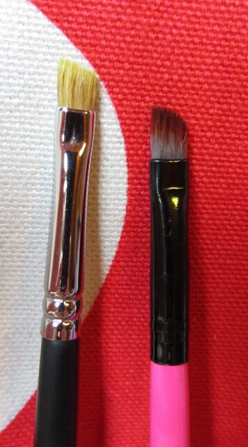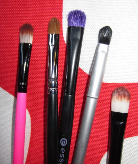 schuin afgesneden borstels (rechts en links) zijn heel handig om het gezicht te