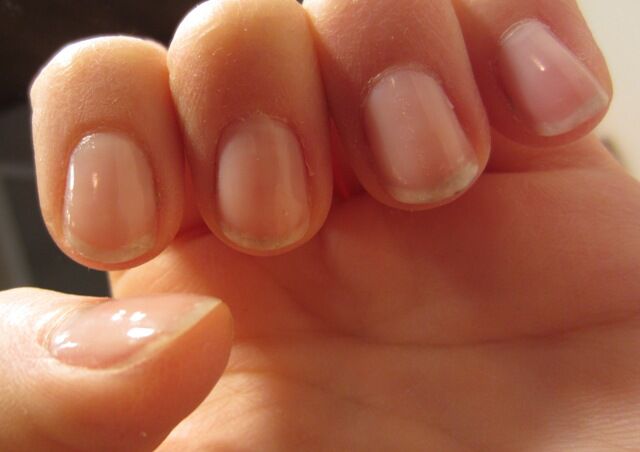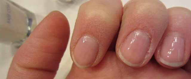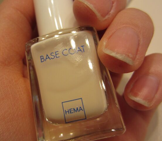 Om de nagels nog meer glans en een mooi gezond kleurtje te geven, gebruik ik een royale laag zacht-roze basecoat. Op de foto heb ik nog niets met m'n nagels gedaan zoals je ziet.