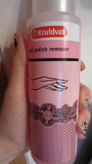 Voor ik aan mijn manicure begin, zorg ik ervoor dat alle restjes oude nagellak van m'n nagels verwijderd zijn. Dit doe ik met een nagellak-remover van Kruidvat, een grote bus aan een zeer kleine prijs.