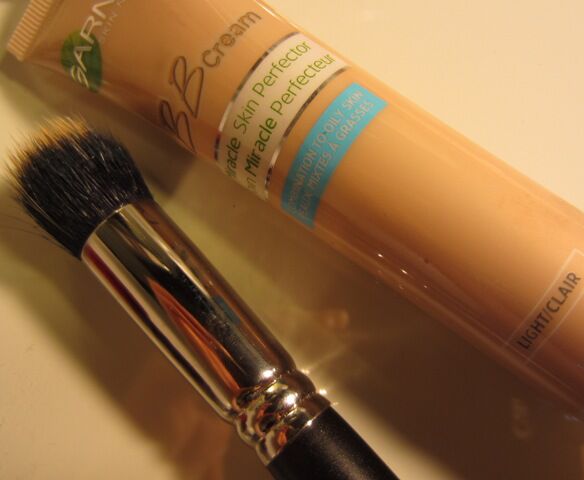 Ik begin met een BB-cream in een lichte kleur zodat die zo goed mogelijk matcht met mijn huidskleur. Een BB-cream is een soort getinte dagcrème en geeft dus niet veel dekking, maar wel een natuurlijk en fris resultaat. Ik kocht de mijne van het merk Garnier in Kruidvat voor slechts 10 euro.