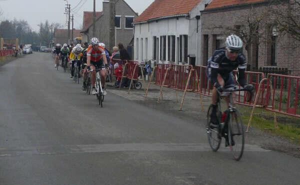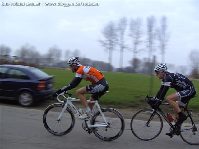 Walter de veerman, nico de baes,peter kerkaert en ivan en ik, ivan lag gebrand op een eerste seizoen zege bij de D's en ik was bereid hem erbij te helpen ivan reed een sterke wedstrijd ook mag gezegt worden dat peter kerckaert (vorige week 2 de) over een sterk paar benen beschikt.