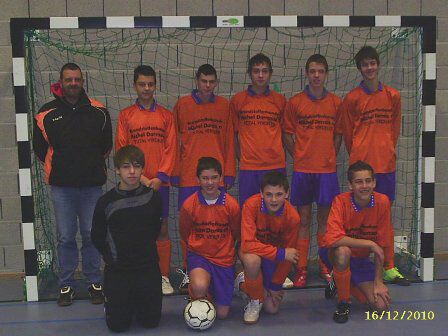 Na eindeloos wachten (2hr15) na de poulewedstrijden, was de finale eindelijk aan de beurt. Na een aarzelende start stonden onze jongens al 0-2 achter en de achtervolging kon beginnen. De euforie bij de thuisploeg sloeg al vlug om toen Brian de aansluitingstreffer binnenknalde. 1' later zorgde Lowie al voor de gelijkmaker en wanneer Yannick met een droge knal de 3-2 binnenknalde, was er geen houden meer aan, nog voor de rust zorgde Brian met een volley voor de ruststand. Na de rust ging het feest gewoon door met heerlijk verwenvoetbal werd de score vergroot. scoorde nog Brian, Keanu en Lowie. Een beloning voor een hele dag voetbal van een hoog niveau. Een dikke proficiat voor de ganse ploeg. Speelden : Davy,Yannick,Brian, Lowie,Keanu,Hervé,Mauro,Mikey en Garin