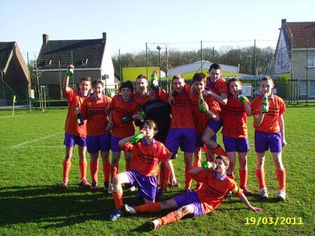 Proficiat !!! De titel behalen is mooi, maar deze is nog zoveel mooier omdat dit een bekroning is van een heel seizoen, waar iedereen zijn steentje heeft toe bijgedragen, waar er vanaf Augustus keihard is voor gewerkt Bedankt iedereen den trainer