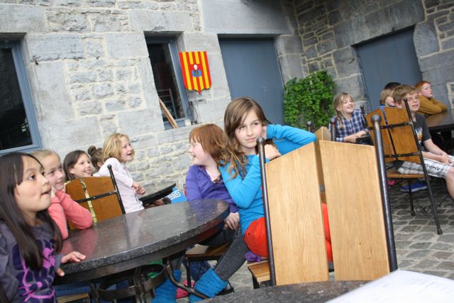 Een andere groep ging met de boswachter op stap. Heel aandachtig de routebeschrijving volgen. We liepen wel verloren, maar dat kwam zeker niet door ons en nog minder door de juf. Echt waar! Er zat zeker een fout in die wegbeschrijving. Ofwel lag het aan die Belgische wegenwerken. In ieder geval: we zijn weer op het kasteel geraakt zonder Child Focus te moeten inschakelen.