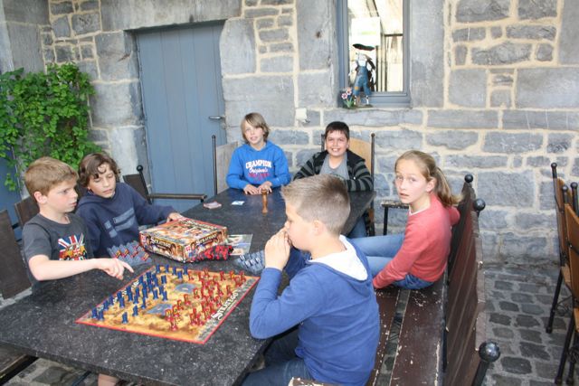 Na een stevig ontbijt kunnen we de groepen verdelen en steeds wat gezelschapsspelletjes spelen. Ook nu is weerwolven erg populair. Het zwaardvechten van de vorige avond gaat nu ook onverminderd voort. Al wordt iedereen wel stevig aangemoedigd.