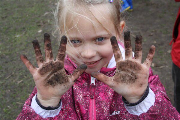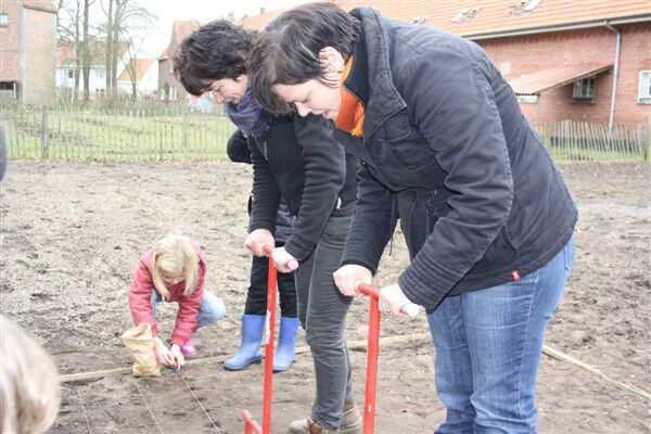 En tenslotte hebben we ook nog uien geplant. Hiervoor werd zelfs onze juf mee aan het werk gezet!
