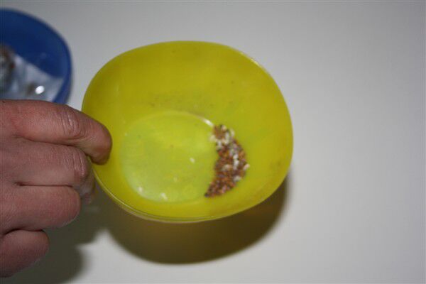 We hebben radijszaadjes uit hun jasjes gehaald. Dit was nogal een prutswerk, maar uiteindelijk hadden we toch wel wat zaadjes!