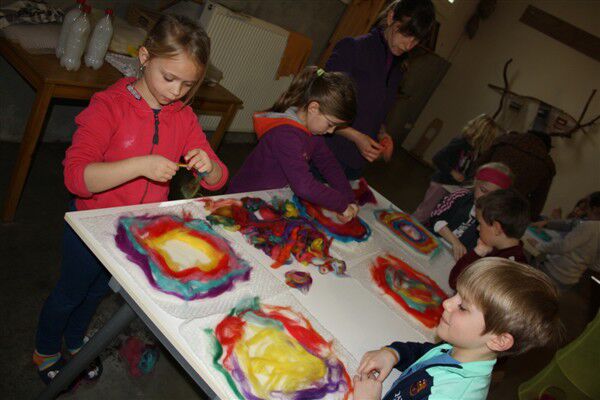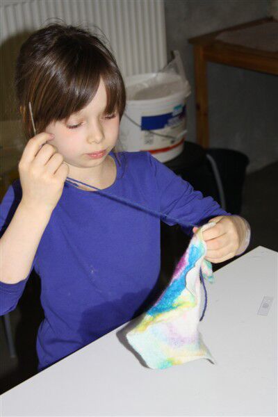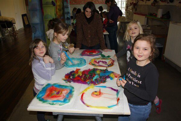 Groep 2 mocht vanmorgen vilten. Ze leerden waar wol vandaan komt, hoe de draden gesponnen worden en we maakten met gekleurde wol een SUPER MOOI zakje!