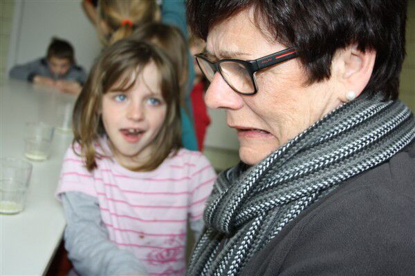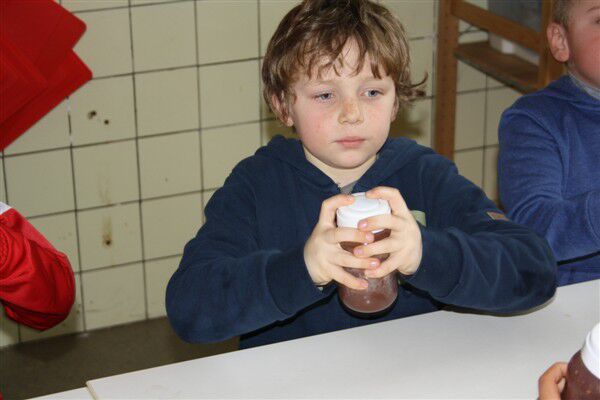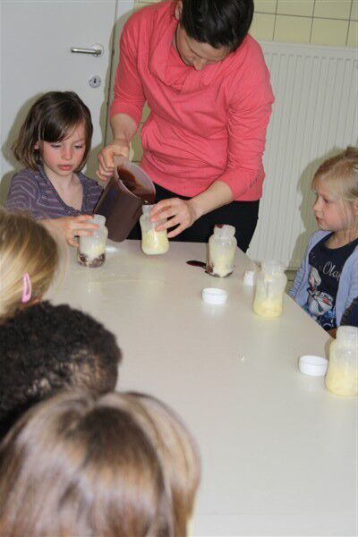 Groep 2 mocht deze voormiddag geitenmelk, paardenmelk en sojamelk proeven (op de foto's zullen jullie zien dat niet alle melk in de smaak viel), choco maken en de koe melken. Na de middag zorgden ze voor de broodjes voor het avondeten.