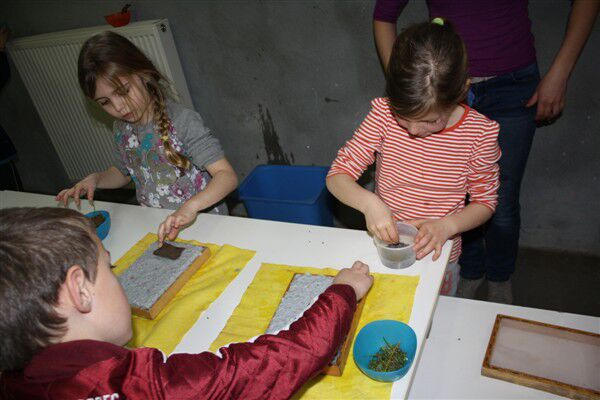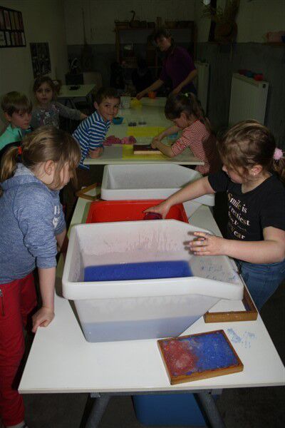 Groep 1 mocht vanochtend werken met wol en deze namiddag maakten ze papier. Ze slaagden er in om groep 2 te verslaan in het meeste papiertjes scheuren! Ze hadden tegen het einde meer dan 400 gram, terwijl groep 2 eerder deze week 'maar' 300 gram haalde!