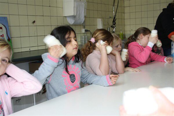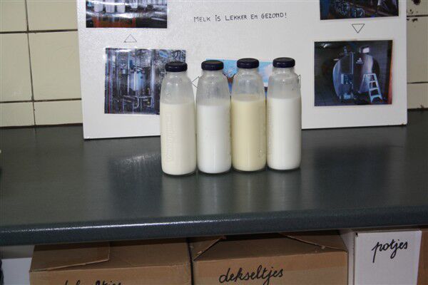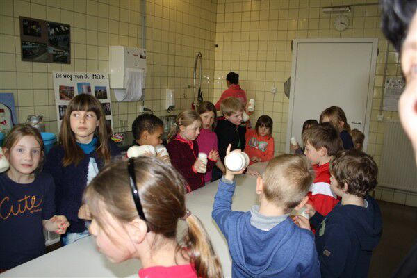 Groep 1 leerde vanalles bij over melk: we mochten een (nep)koe proberen melken, we proefden verse melk en we hebben zelf choco gemaakt met chocolade, suiker, melk en verse room. Van de room maakten we eerst zelf boter. Kijk maar goed naar de foto's!