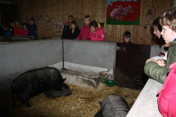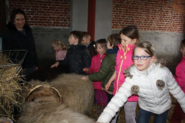 Om half 2 werden we dan al buiten op het erf verwacht voor een rondleiding op de boerderij. Zo maakten we al voor de eerste keer kennis met een aantal van de dieren.