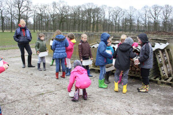 Na het vieruurtje mocht groep 1 dan EINDELIJK eens mee om de dieren te voederen.
