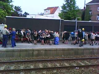 de 21ste juli vertrokken dewi en david met grote touringcars naar kamp vellereux voor 10 dagen, stel je voor 10 agen "mama-vrij" dat is pas feest Tammy vertrok zaterdag 25 met de trein, omdat het alleen de kapoenen waren en ze maar met een 40 waren was dat niet genoeg voor de bus, om 10 u gingen die de trein op