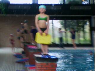 om 6u moesten ze in et zwembad zijn bij juf An maar dewi had geen fut meer David en Tammy daarentegen hadden voor de dag nog niet genoeg water gezien