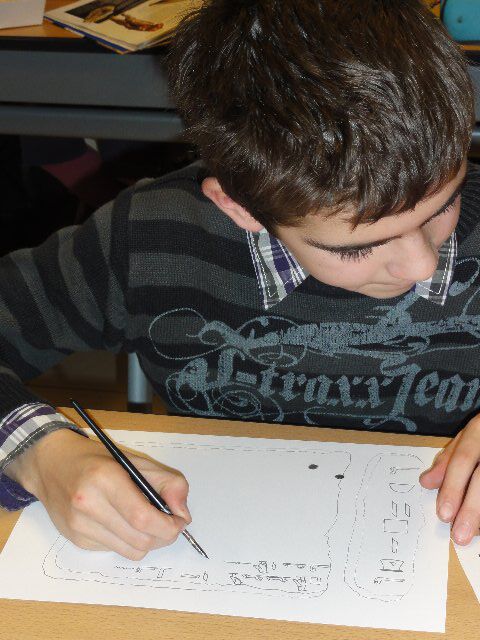 We luisterden aandachtig naar de muziek van Dennis Tyfus. Het was niet makkelijk om de muziek te omschrijven, want je kon er van alles in horen. We kregen elk een blaadje en we tekenden wat we dachten te horen : een pletmachine, een trein, een robot,