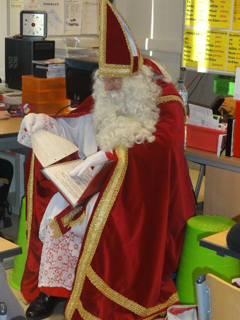 Na een stevig sinterklaasontbijt was het eindelijk zo ver. Met z'n allen gingen we de sint en z'n pieten opwachten op de kleuterspeelplaats. In volle concentratie keken we naar boven. Ze zouden met de luchtballon komen... Tot we plots het gesputter van een mooi opgezette tractor hoorden. Het drietal was van voertuig veranderd... Uit noodzaak.... : Na een noodlanding - in het stro - met de luchtballon, was er een vriendelijke boer die hen toch naar de lieve kinderen van Het Bollebos wou brengen. Oef ! Eind goed, al goed ! Sint kon met z'n zwartepieten aan de klasbezoeken beginnen. En ja, ook wij van het zesde leerjaar ontvingen hen met een zelfgemaakt lied ! Kijk maar mee naar de sfeerbeelden !