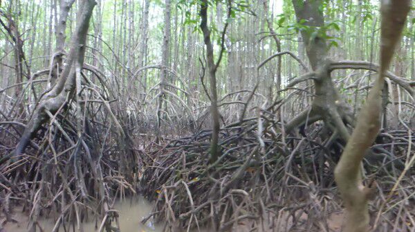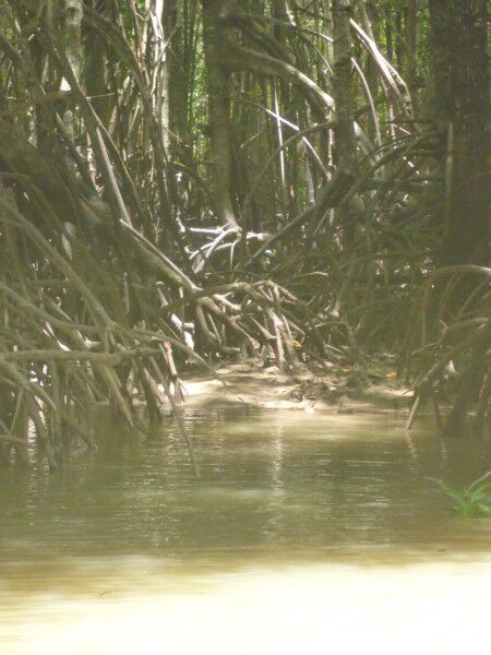 Ook mooi weer, warm maar een is een briesje.We nemen de auto en rijden wat verder naar Krabi stad waar we de pier opzoeken om een longtailboot te charteren om de mangroven te verkennen.We kunnen een goede deal sluiten voor een uitgebreide en lange toer door de mangroven. Wat we zien is moeilijk met woorden te beschrijven. Het is laag water en de wortels steken dus heel ver uit het water, gewoon schitterend. Onze bootsman doet echt zijn best en neem allemaal kleine weggetjes volledig tussen de mangroven. Plots bemerken we zelfs enkel aapjes midden in de mangroven.We houden een eerste stop bij een grot. Trapjes naar boven en we ontdekken een prachtige grot. Ook hier allemaal zeer kleine felgele mini krabbetjhes.Tweede stop is een viskwekerij, waar we ook de tijd nemen om te lunchen. Het is hier de rust zelve en hebben prachtig uitzicht op drijvende woningen. Verder terug door de mangroven en we spotten zelfs visarenden!Het is echt de moeite! Terug aan wal toch eerst een terrasje opzoeken.