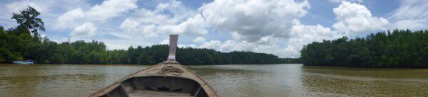 Vroeg op vandaag want we willen tegen de middag aankomen in Khao Sok, midden in het regenwoud. Zo gezegd zo gedaan. We gaan op zoek naar een hotel dat we op het oog hebben, maar... alles is vol. Het volgende dat we proberen is ook vol.Dat ziet er niet goed uit maar de derde keer hebben we prijs. We slapen in het morning mist resort, onze kamer is vrij rudimentair, maar we hebben een goed terras, we zitten tenslotte in de brousse. De ramboutanbomen staan voor onze deur, we hebben ze zo maar op te rapen.We boeken nog een kanotoer voor deze namiddag. We vertrekken iets verder dan het hotel, stappen in 2 kayaks met elk een peddelaar en varen de rivier af. Dit is enorm indrukwekkend, niet te vatten in woorden. We zien apen, allerlei slangen, waaronder een python, een zwemmende slang ijsvogels enz. Schitterend! Onze peddelmannen stoppen onderweg, verdwijnen in het oerwoud en komen iets later terug met allerlei vruchten die ze gewoon van de bomen zijn gaan halen. Heerlijk!We stoppen zelfs om in de rivier te zwemmen. Dit is toch wel echt de moeite! Prachtige bomen, struiken, bloemen enz...