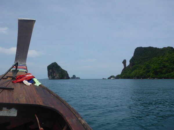 Vandaag is een reisdag. Na een lekker en aangevuld ontbijt ( integenstelling tot gisteren) vertrekken we naar de luchthaven van Chiang Mai. We leveren onze huurauto in en vertrekken stipt op het voorziene uur richting Phuket.. In Phuket halen we terug een huurauto, ongeveer dezelfde dan in het Noorden, alleen een ander kleurtje en hier krijgen we de radio niet aan de praat. We moeten nog 140 km rijden naar onze eindbestemming van vandaag: Ao Nang in de buurt van Krabi. Onderweg zien we al prachtige rotsen die de streek hier kenmerken. Het is al bijna donker als we in ons resort ( Phra nang inn) aankomen. Het is hier wel mooi, een prachtig zwembad en onze kamers ( met terras) geven uit op het zwembad. Vlug naar de bar want we hebben dorst gekregen.... We gaan hier echter vrij vlug lopen want de muziek staat toch wel wat hard ( of worden we dan toch oud?)Het dorpje in om te gaan eten ( lekker) en terug naar ons terrasje voor een slaapmuts(je) Vandaag geen foto's het was een gewone reisdag, niets speciaals gedaan maar we beloven dit morgen goed te maken dus.... zeker niet afhaken!