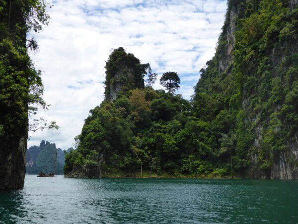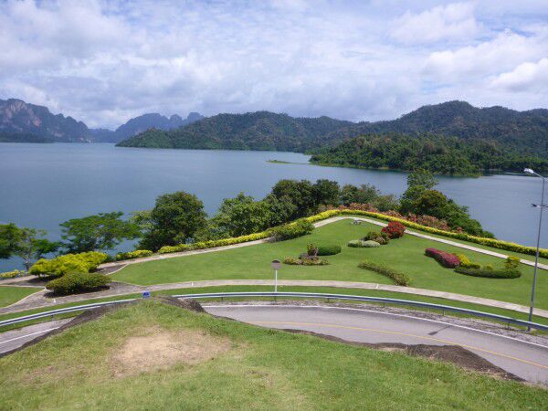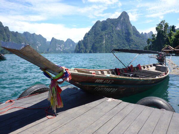 Vandaag staat het meer van Khao Sok en de dam op ons programma.Dit is toch een 60 km verder, dus een uurtje rijden. Eerst de dam. We hebben een prachtig uitzicht! We charteren ( voor de verandering) weer een longtailboot voor een toer op het meer. Dit is wel groots enorm imposant. We doen maar een klein stukje van het meer maar dit is al enorm groot, prachtige steile rotsen, prachtig groen water, soms blauw, we zien zelfs een leguaan in het water zwemmen. Het is adembenemend mooi, precies Jurassic Park! We worden er gewoon stil van ( en dit wil wat zeggen)