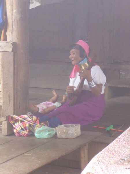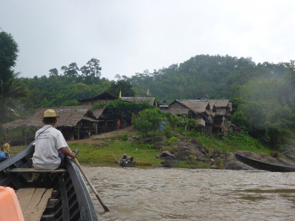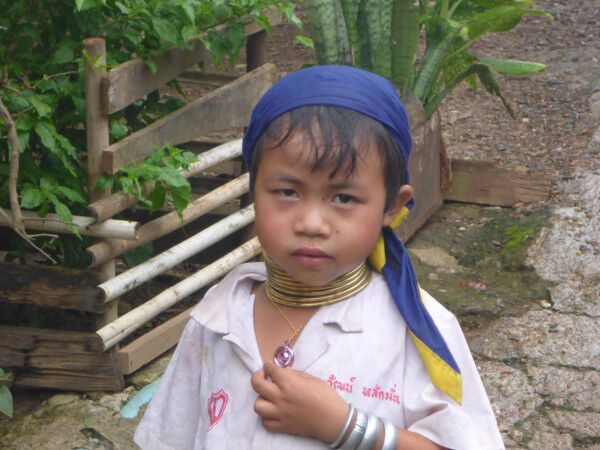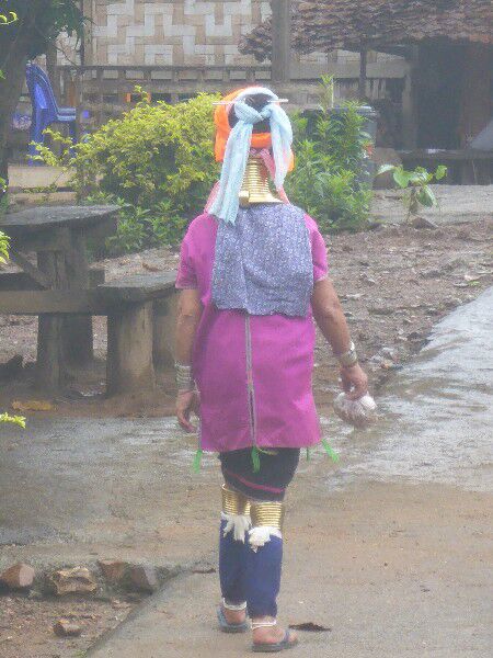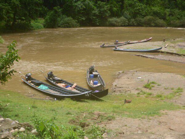 Na een goed ontbijt staat het bezoek aan de Paduang women ( longnecks) op het programma. We gaan op zoek naar de pier waar de bootjes vertrekken maar rijden verloren. Eigenlijk goed dat we verloren zijn gereden want het is hier gewoonweg prachtig, we moeten herhaaldelijk een wet crossing door , wat soms toch wel wat spectaculair is. We passeren ook de eerste olifanten. Uiteindelijk vinden we de pier, we proberen wat af te pingelen, wat niet lukt ,en stappen de boot in. We zitten gewoon op de grond en moeten toch wel een eindje varen voor we het dorp van de longnecks bereiken. Dit dorp is blijkbaar alleen per boot bereikbaar.Zo vlug we het dorp binnenwandelen gaan al verschillende vrouwen klaarzitten om op de foto te gaan. Het is wel wat commercieel , maar we nemen dit er maar bij want het is toch zeer speciaal en uniek om te zien.We zien toch vrij veel vrouwen in specifieke klederdracht, sommige hebben zelfs ringen om hun knieën en benen en de leeftijd varieert van zeer jong tot zeer oud. Niemand maakt problemen om foto's te maken ( we moeten wel inkom betalen om het dorp te betreden) Alleen spijtig dat het even is beginnen regenen, gelukkig duurt dit niet lang. Met de boot terug naar de pier en verder op weg naar Mae Hong Son centrum, waar we iets eten en de tempels aan het meer bekijken. We zijn pas in een van de tempels als het begint te onweren en vreselijk te stortregenen. We wachten even, maar kunnen niet blijven wachten en gaan uiteindelijk toch naar de auto, waar we met moeite kunnen instappen daar deze toch tot bijna de helft van de banden in het water staat. Dan maar terug naar het hotel, waar we een zeer kleine siesta doen, even skypen met het thuisfront en ik mij dan in de lobby met wifi nestel om de blog nog op tijd op te stellen tijdens onze apertief.Indien er hierna nog iets schokkends gebeurwordt dit morgen op de blog gezet en wordt dit bericht gewoon aangevuld, zoals gisteren.