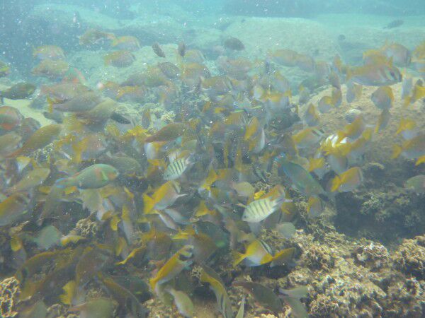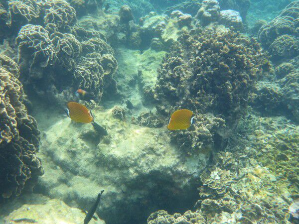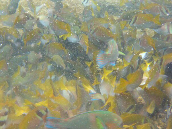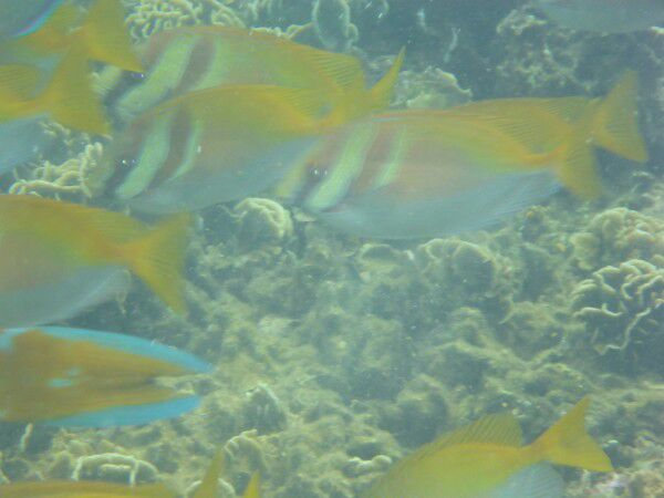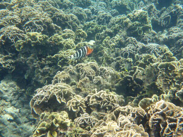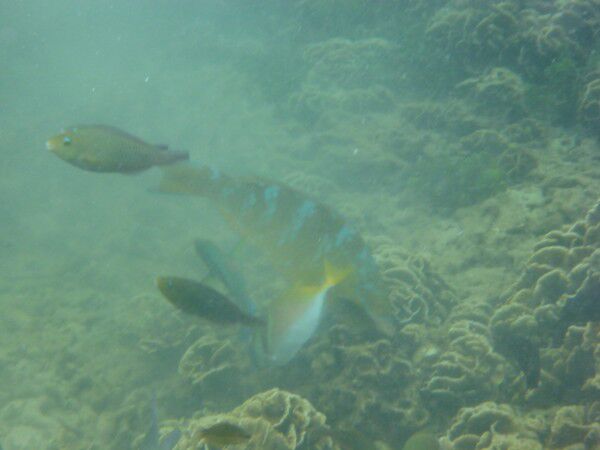 Clo en Louke genieten vandaag ten volle van het terras en wij gaan snorkelen, snorkelen en...snorkelen! We zijn pas het water in, nog zeer ondiep, of we zien al massa's vissen! Dat beloofd! Vlak bij het hotel ligt een wrak dus daarheen! Wat is het leven onder water hier ongelooflijk mooi! Massa's koralen en zoveel soorten vissen, te veel om op te noemen ( we kennen ze ook niet allemaal) Ze zijn hier in alle formaten, alle kleuren, met bollen, gestreept, fluo enz, enz. Soms zwemmen we midden in een enorme school, dit is onbeschrijflijk! Vandaar dat het fotoverslag zich vandaag beperkt tot het leven onderwater! Wel nog even een pakje Birmese sigaren oferen aan het tempeltje voor de tweedezitter ( het vorige offer heeft blijkbaar succes gehad)