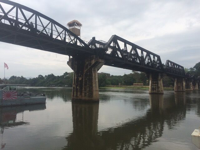 na een spookt night pakten we onze spullen om richting de bridge over the rivier Kwai te vertrekken. na een tien minuutjes rijden arriveerden we op de brug. De spoorlijn over deze brug is nog steeds in gebruik. We wandelden de brug over en ik moest Véro intomen want zij heeft iets met treinsporen ) nadien wandelden we naar beneden waar we de brug in zijn totaliteit zagen. Na de brug ging de tocht verder naar het kerkhof ter herdenking van de duizenden slachtoffers van WO2 die als krijgsgevangen moesten werken aan de spoorlijn. Je kon niet anders dan er stil bij worden. Hier liggen Australiërs, Britten en Nederlanders uitgestrooid. Na het kerkhof ging de tocht verder richting Ayutthaya, de oude hoofdstad van Thailand. Hier kan je ontzettend veel tempels bezichtigen. Sommigen in goede staat, anderen niet meer dan een hoop stenen. De stad werd immers in brand gestoken toen Birma Thailand binnenviel. Nu is dit Unesco werelderfgoed en worden de tempels stilaan gerestaureerd. Erg mooie plaats! Dit was meteen het einde van onze 3-daagse trip. We reden terug richting Bangkok waar we ons opmaken voor de reis richting Cambodja.