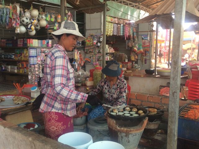 Na het ontbijt werden we opgehaald om na een aantal andere mensen te hebben opgepikt naar onze eerste stop te rijden: de markt. Hier konden we water kopen en eventueel extra lekkers voor tijdens de trekking. Hier zagen we de plaatselijke delicatesse waarvan we gruwelden en onze magen draaiden... gebakken kakkerlakken, kevers, wormen en larven. Niet meteen ons idee van iets lekkers.
