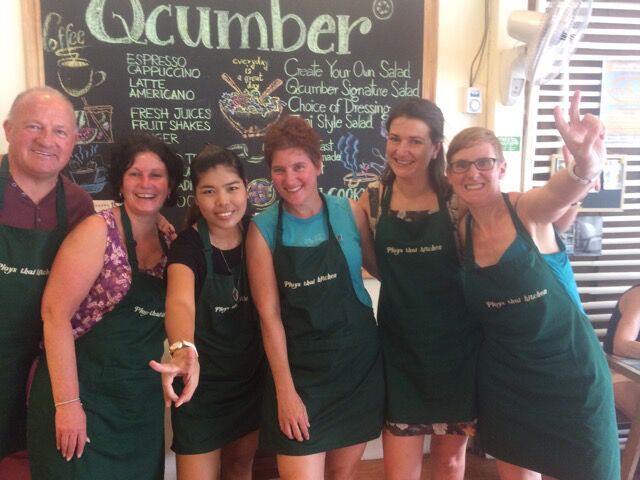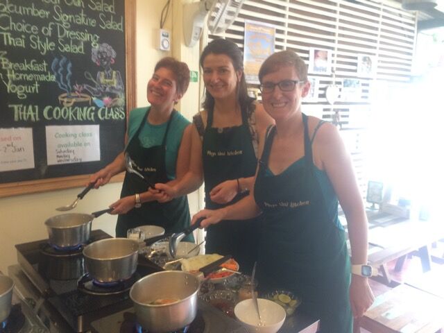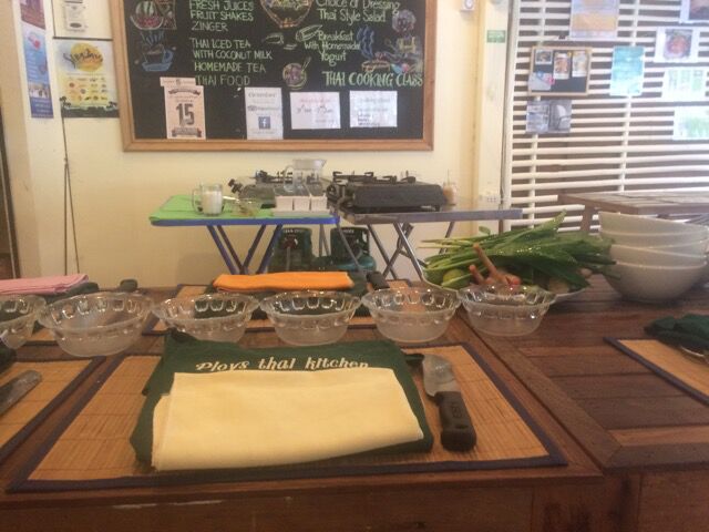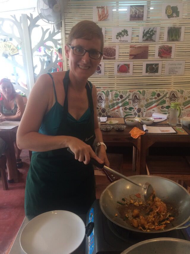 Vandaag was het deze voormiddag rotweer. Gelukkig hadden we zen kookles gereserveerd bij Ploy. Deze Thaise dame hadden we de avond voordien ontmoet toen we gingen eten in haar restaurant Qcumber. Dit restaurants serveeet enkele typische Thaise gerechten en je kan er lekkere salades eten en zelf samenstellen. Ploy vertelde ons. Dat ze België goed kent. Ze is immers gehuwd met een man uit Gent. Hij werkt hier als duikinstructeur en helpt mee in het restaurant. Daar hadden we gelezen dat ze kookles gaf. Het was echt super leuk om te doen. We maakten onze eigen chili pasta, Tom yum soep, Pad Thai, groene curry en als dessert sticky Rice met mango. Het was erg lekker en ga dit zeker in België uitproberen. Maar eerst alles ervoor vinden natuurlijk.