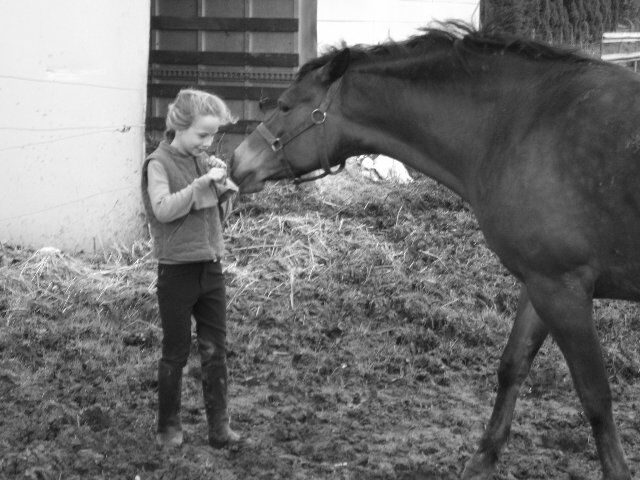 elke dag ging ik een meneer zijn paarden eten geven ze stonden wat verder in de straat hij vroeg of ik van paarden hield natuurlijk!!! tegen mijn mama zij hij dat hij me er wel één wou geven en staat in ninoven wij wonen in brakel mama heeft daar intrese in en we spreeken af er eens heen te gaan !!:-in een wei vol modder staat een heele groote ruin met zwarte mannen een kleine gevlekte schetlandpony en een heele dikke vettte d-pony met een buik tot aan de grond!! welke denkje ja die dikke merie met een slecht karakter en dan nog handen schuw en!!! niet berijdbaar en de naam beauty!!!